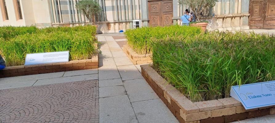 Non sono mancate la divulgazione e l’informazione, a partire dall’allestimento, sul sagrato della basilica di Sant’Andrea, di sette piccole risaie, ciascuna delle quali ha ospitato una varietà classica del riso italiano (Roma, Carnaroli, Arborio, Baldo, Sant’Andrea, Vialone Nano e Ribe), e due microaree dedicate alla vegetazione spontanea tipica delle Terre d’Acqua, con una scenografica spettacolare che unisce storia, agricoltura e arte.
