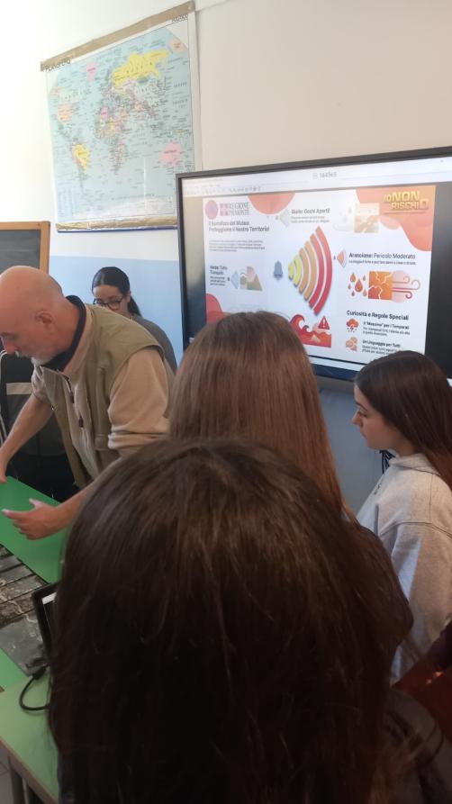 Quest'anno i volontari comunicatori della Campagna “Io Non Rischio Scuola” e i formatori della Campagna “Io Non Rischio” affiancano i geologi nel Progetto "E'-Geologica" portando in aula il punto di vista della protezione civile, con particolare attenzione ai comportamenti corretti, alle buone pratiche di prevenzione e alla consapevolezza dei rischi. Attraverso il racconto diretto delle loro esperienze i volontari illustrano agli studenti cosa significa essere al fianco della popolazione nei momenti dell’emergenza, spiegando come il contributo di ciascuno possa fare la differenza prima, durante e dopo un evento calamitoso.